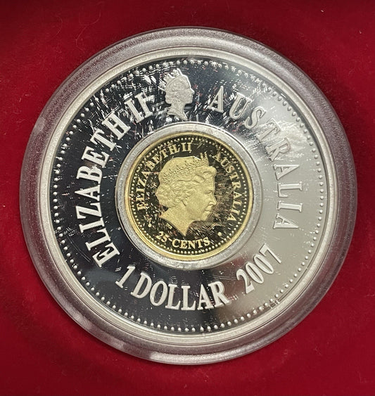 2007 Lunar New Year 12 Year Cycle - Gold Plated Coin Holey Dollar & Dump Set