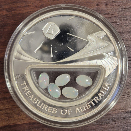 2008 Perth Mint Treasures of Australia Opals 1oz $1 Silver Proof Locket Coin