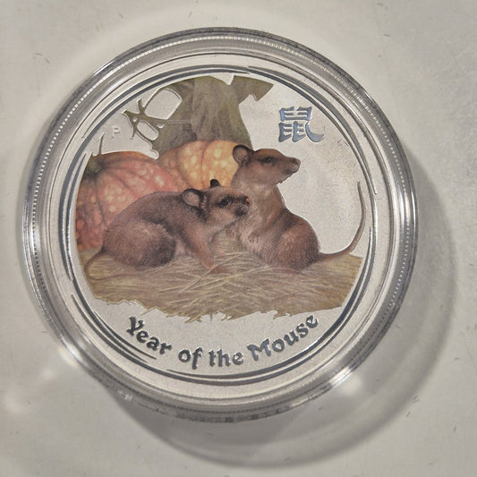 2008 Australia Lunar Series 2 Coloured Rat Mouse 1oz BU Silver Coin