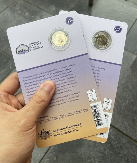 2024 $2 Two Dollars C Mint Purple Poppy War Animals Remembrance UNC Coin In Card