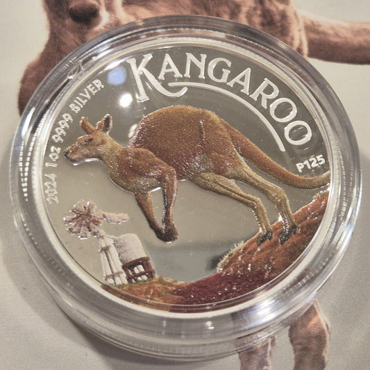 2024 $1 Australian Kangaroo 1oz Silver Proof High Relief Coloured Coin