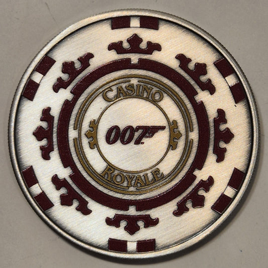 2023 Casino Royale 007 James Bond Poker Chip 1oz Silver Antiqued Coloured Coin