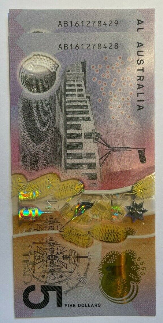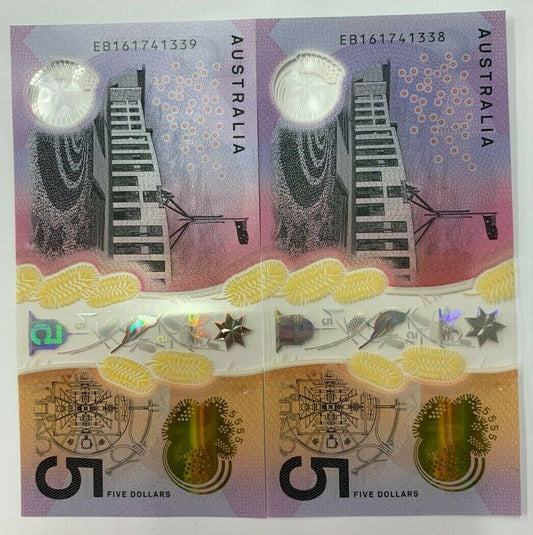 5 dollar note Australia 2016 AA/EJ Pair "163" beginning