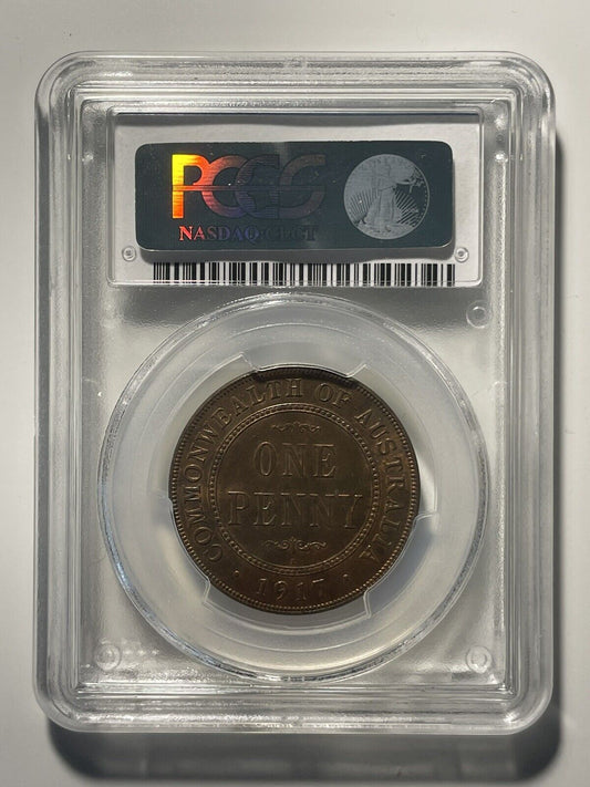 Australia 1917 Calcutta One Penny 1d PCGS Graded MS64RB Choice UNC