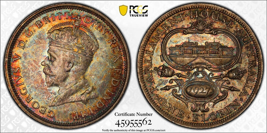 Australia 1927(m) Canberra Florin Two Shillings 2/- George V PCGS Graded MS65