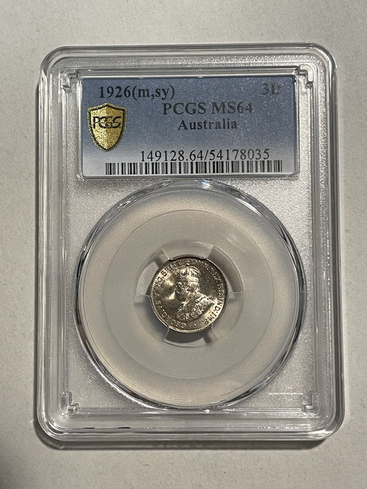 Australia 1926 (m,sy) 3d Three Pence PCGS Graded MS64 UNC Coin Scarce