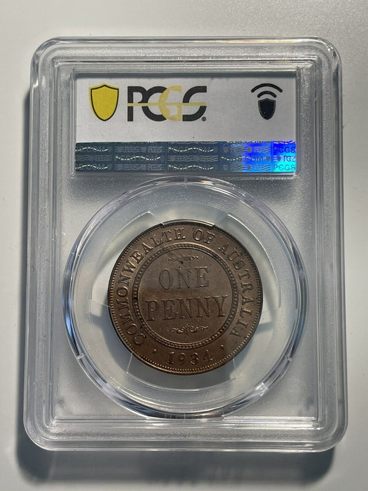 Australia 1934(m) One Penny 1d PCGS Graded MS64RB Choice UNC Red Brown