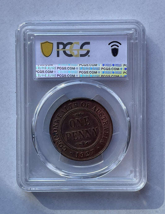 Australia 1927(m) One Penny 1d PCGS Graded MS64RB Choice UNC English Obv KGV
