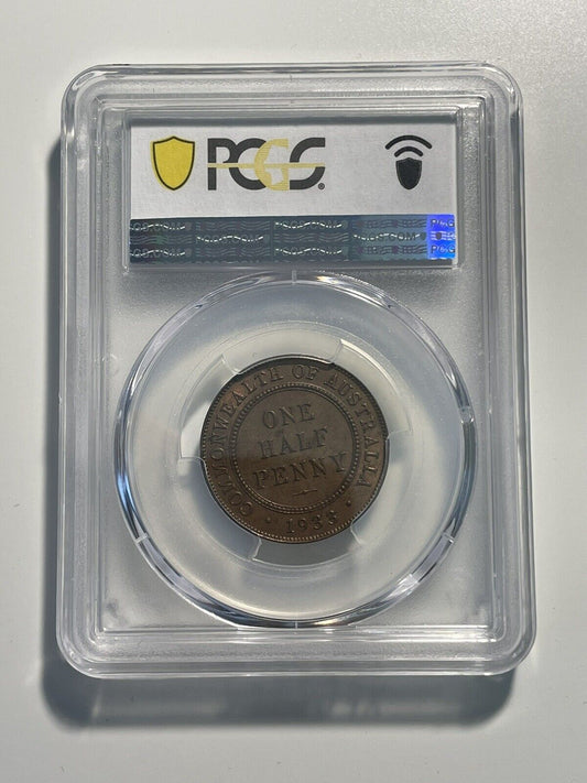 Australia 1933 Halfpenny 1/2d PCGS Graded MS64RB Choice UNC Red Brown
