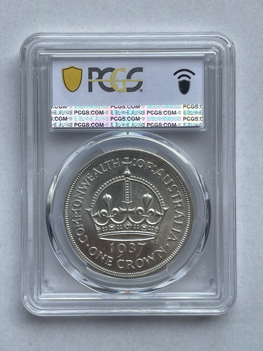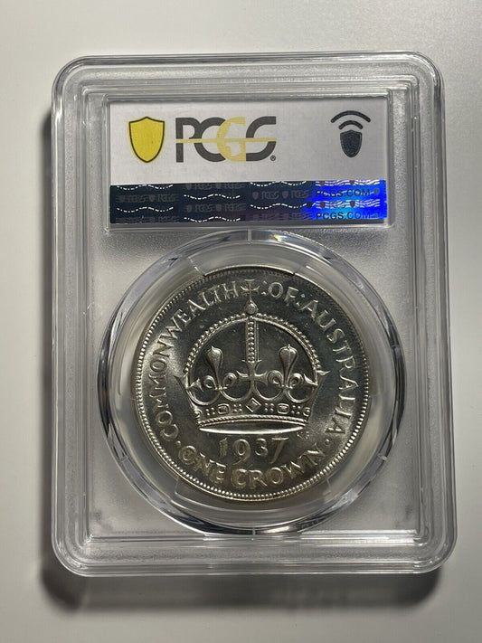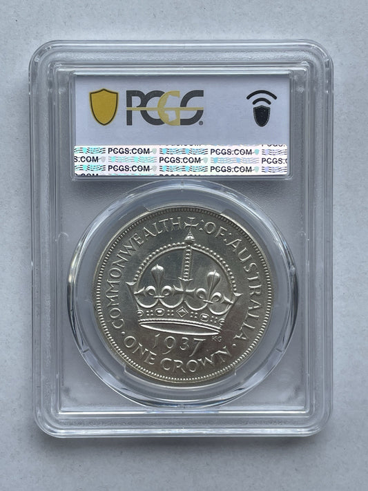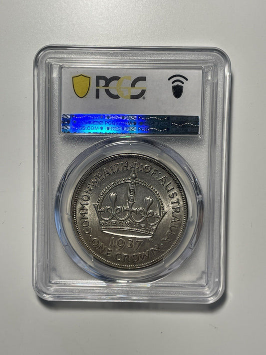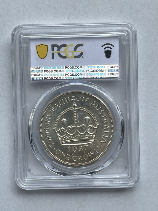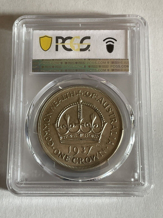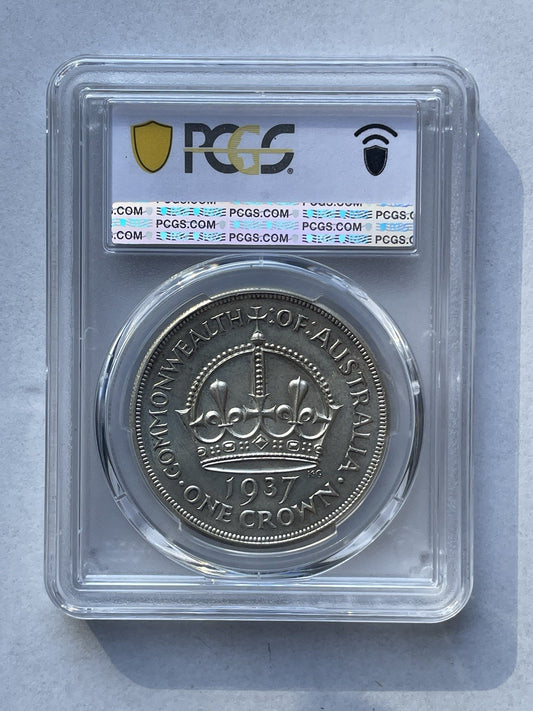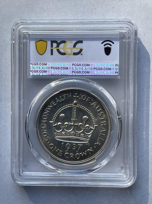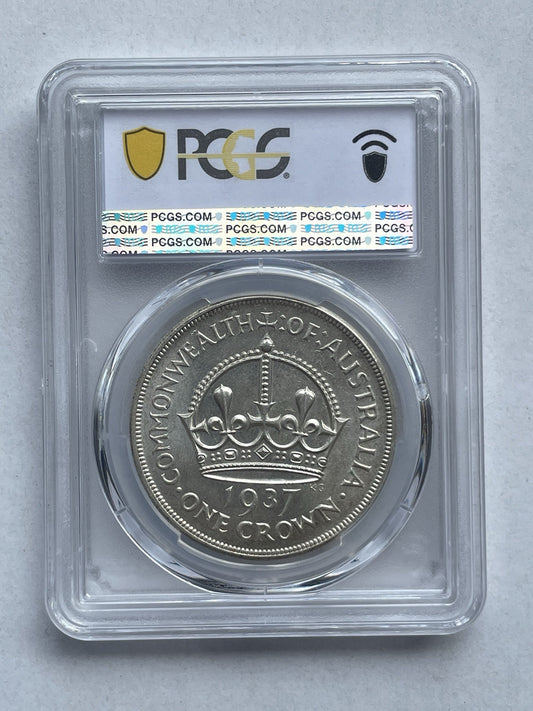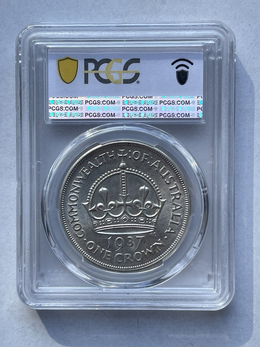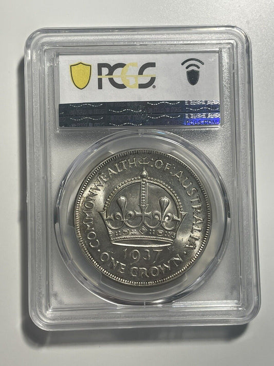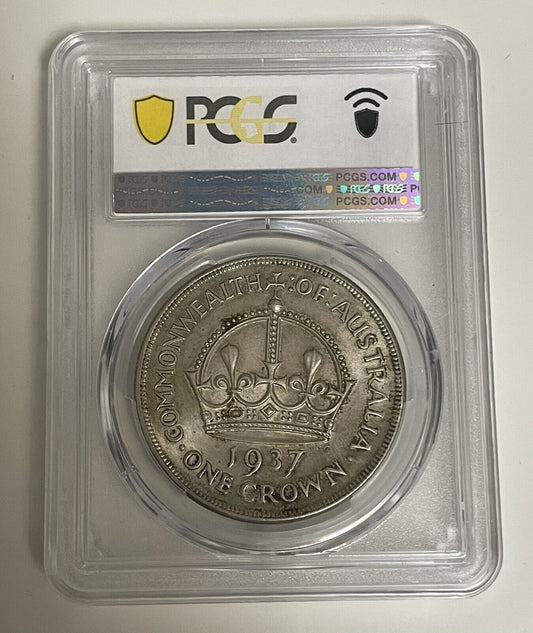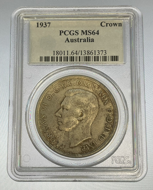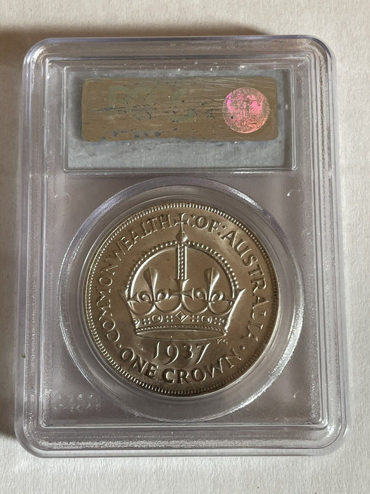 Australia 1937 Crown PCGS Graded MS62 UNC Five Shillings 5/- Large Coin KgVI