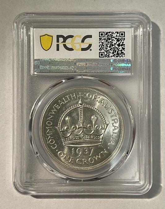 Australia 1937 Crown Five Shillings 5/- Large Silver Coin PCGS Graded MS64