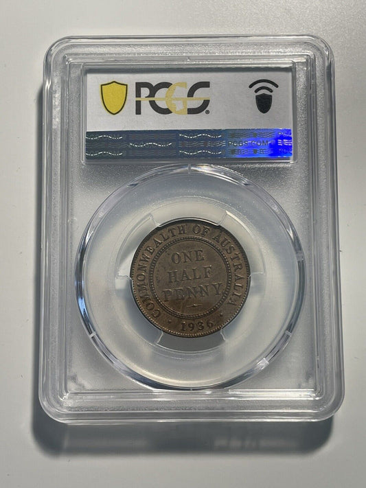 Australia 1936 Halfpenny 1/2d PCGS Graded MS64RB Choice UNC Red Brown