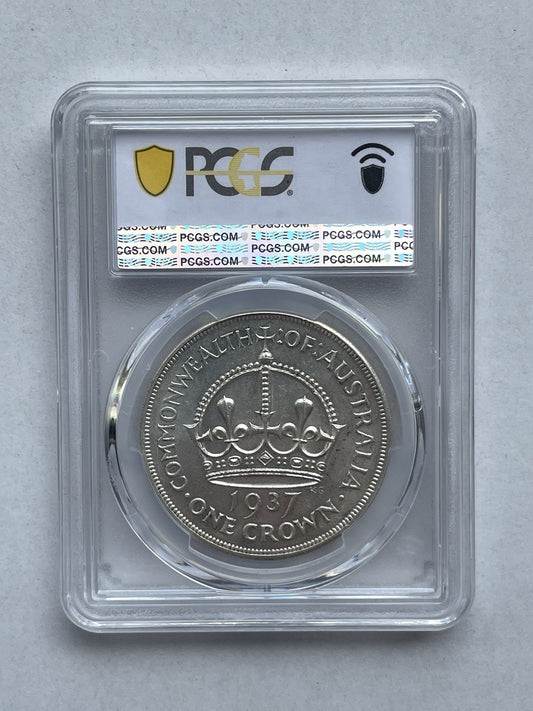 Australia 1937 Crown PCGS Graded MS61 UNC Five Shillings 5/- Large Coin KGVI