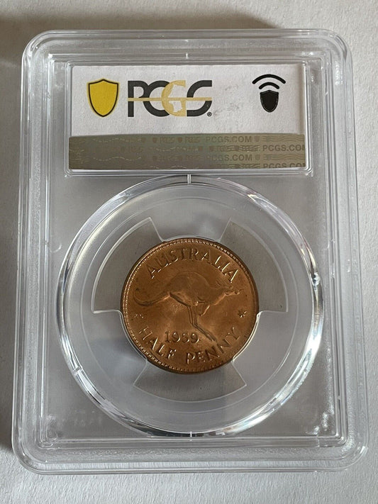 Australia 1959(m) Melbourne Halfpenny PCGS Graded MS65RD UNC Red Scarce