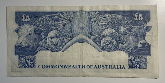 Australia 1954 Coombs/Wilson £5 Five Pounds VF Predecimal Paper Banknote
