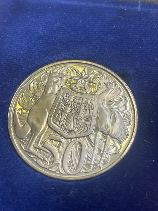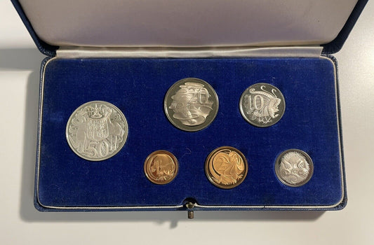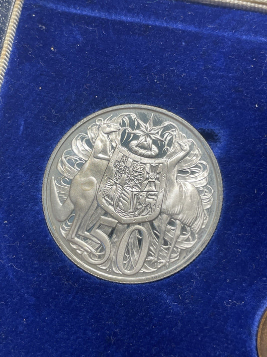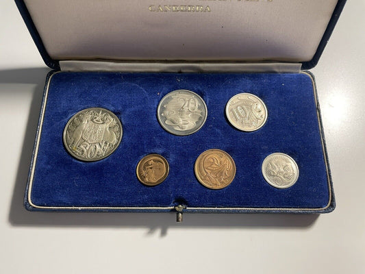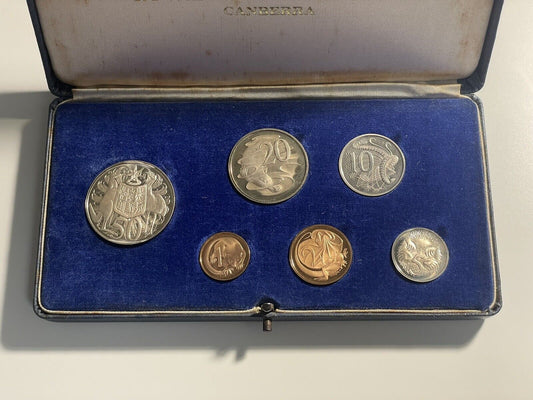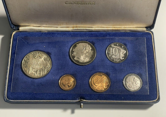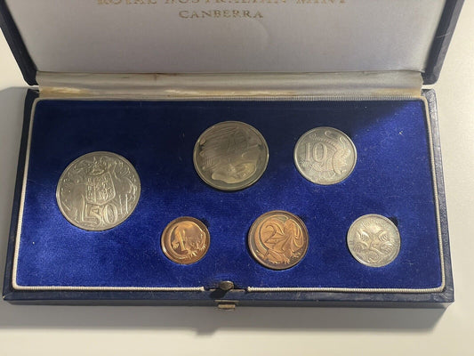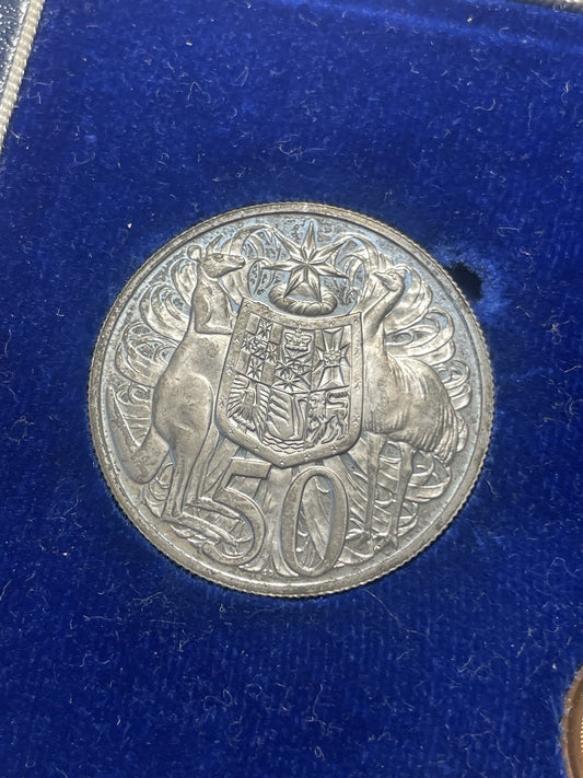 1966 Australian Proof Set Scarce Round 50c Fifty Cents Commonwealth Blue Case