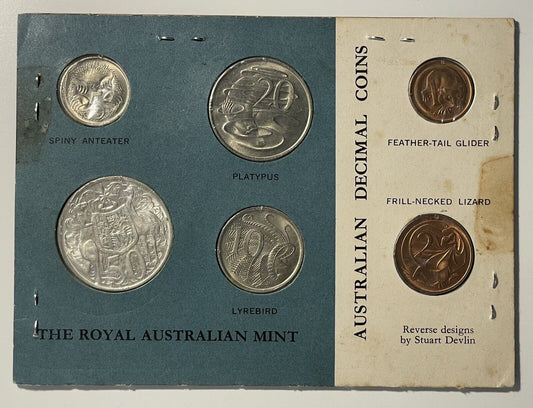 1966 Royal Australian Mint First Decimal Mint Set Round 50c Fifty Cent Card UNC
