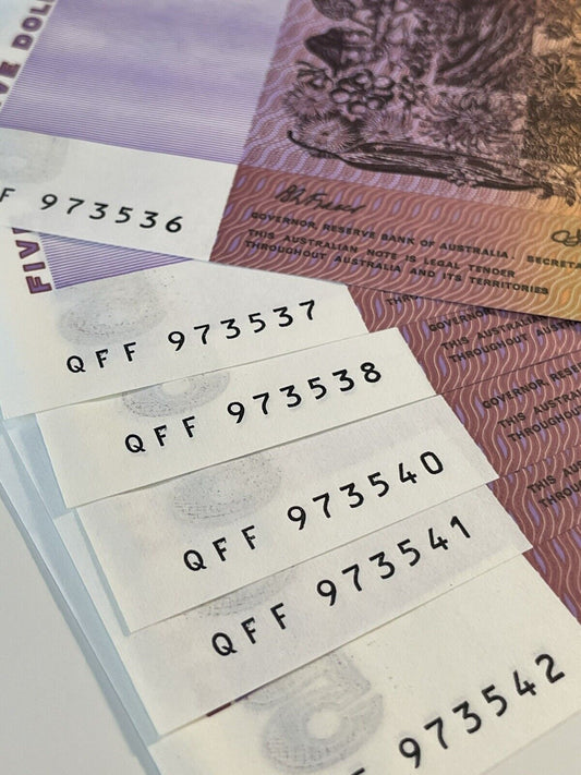 1991 Australian 5 Dollar Note - BANK BUNDLE - Fraser/Cole - CONSECUTIVE SERIALS