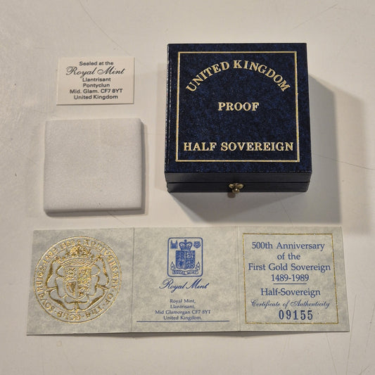1989 UK GB 500th Anniversary Half Sovereign Gold Proof Coin Royal Mint