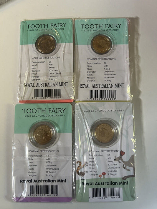 1x 2020 1x 2021 & 1x 2022 & 1x 2023 TOOTH FAIRY $2 COINS CARDED RAM