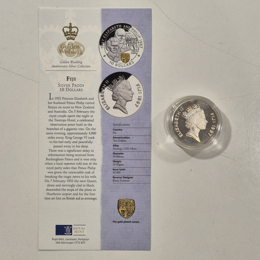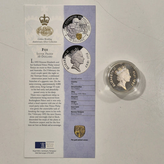 1997 $10 Ten Dollar Fijj Elizabeth II Philip Golden Wedding Silver Proof Coin