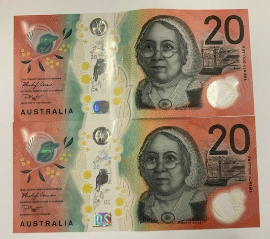 20 dollar note 2019 Australia "AA/EA" Serial Pair Lowe/Gaetjens