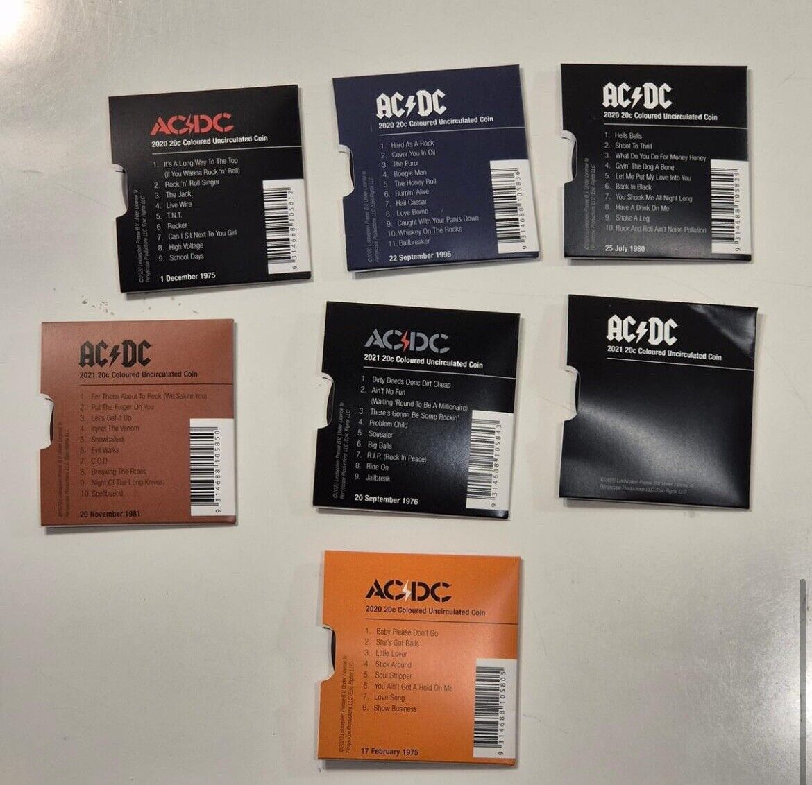 2020 2021 AC/DC 7 Coin Box Set UNC 20c Coloured Collection RAM vol 1