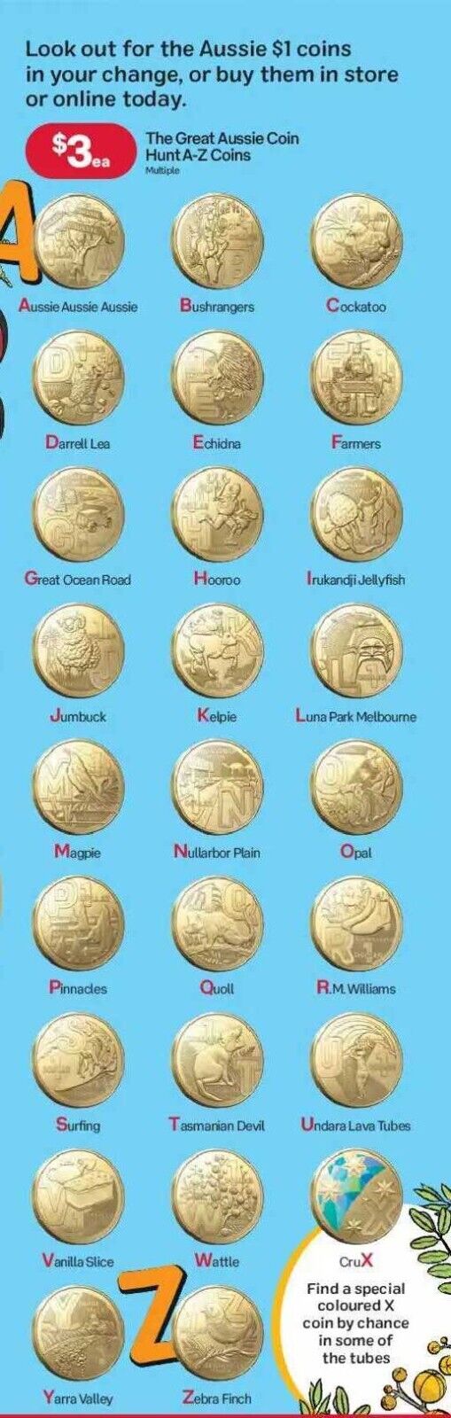 2022 Great Aussie Coin Hunt $1 Alphabet Coins Individual