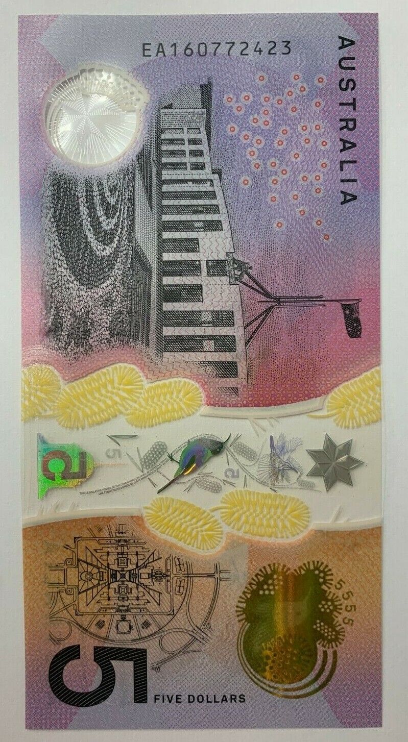 5 dollar note Australia 2016 3 consecutive serials a/UNC