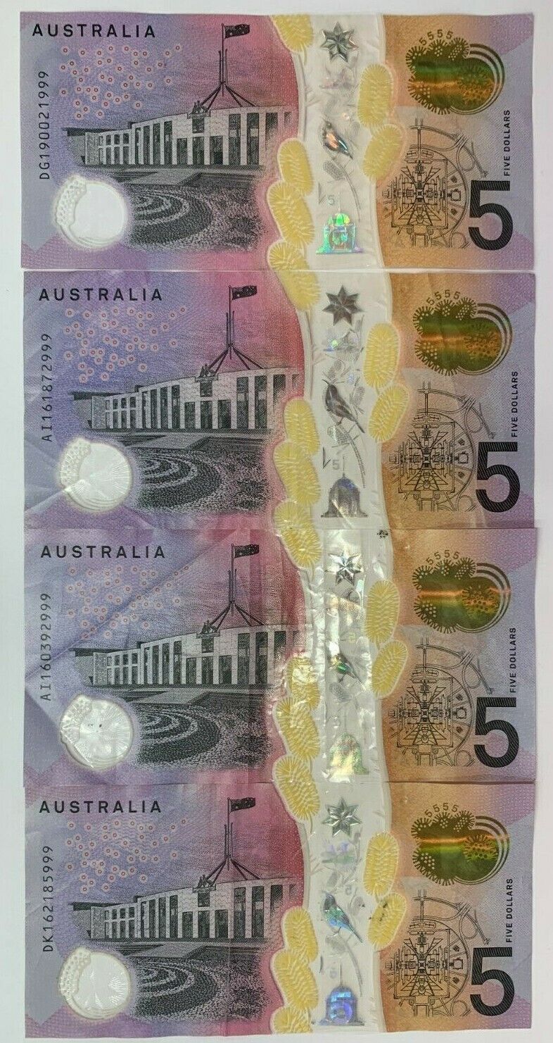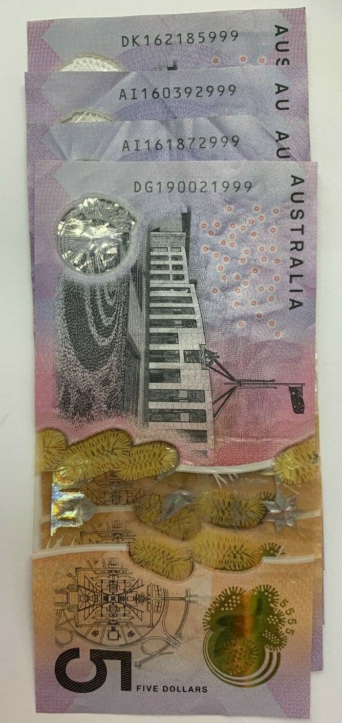 5 dollar note Australia 2016/2019 "999" Ending Serials