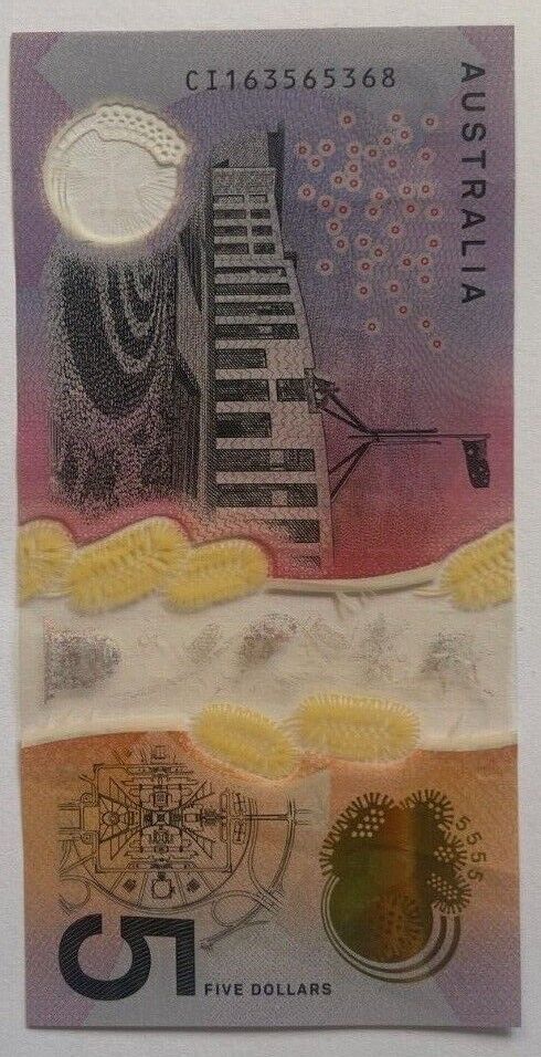 5 dollar note Australia 2016 "6356536" RADAR serial