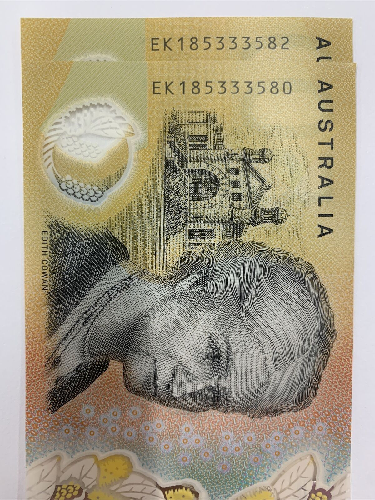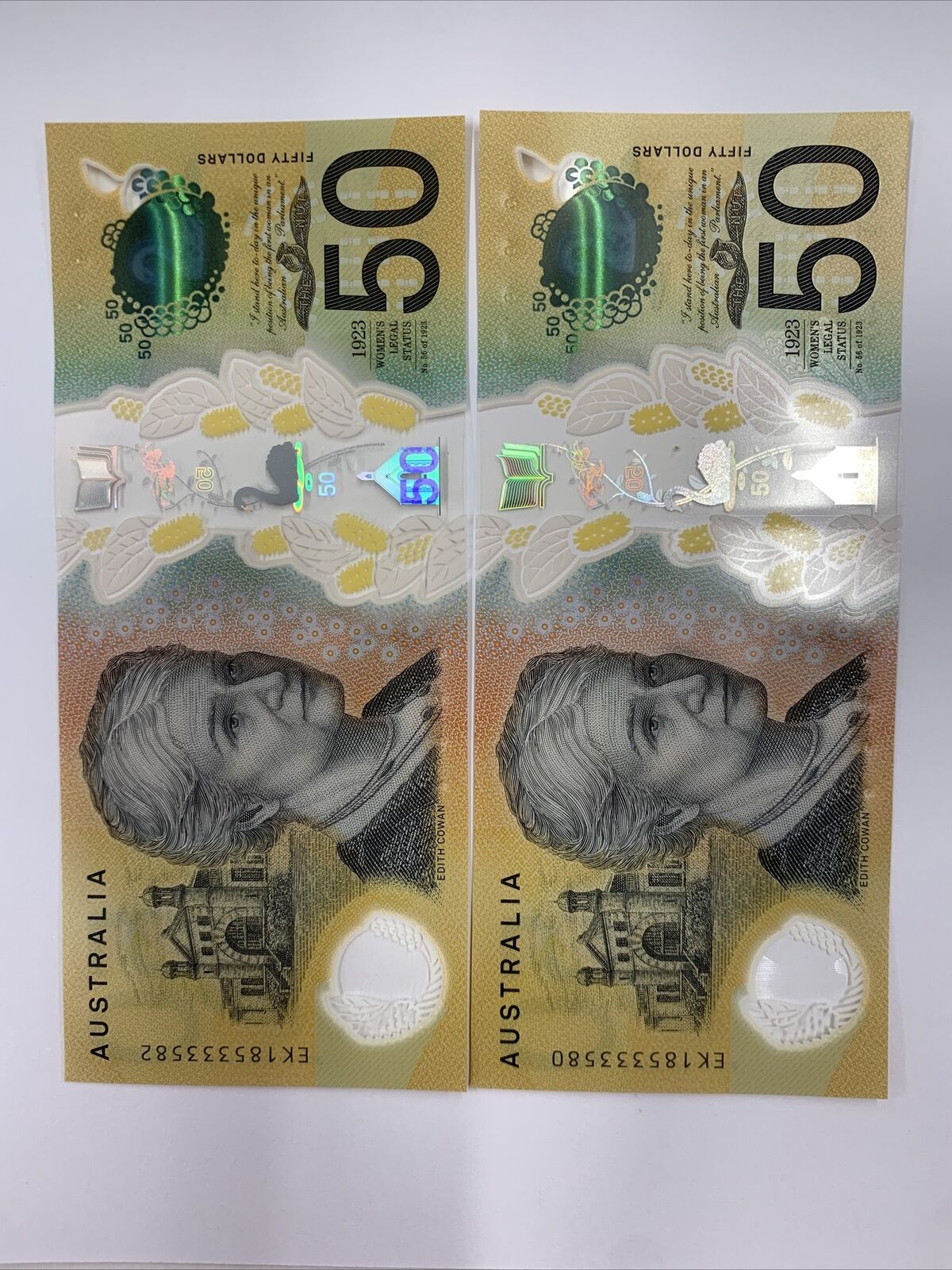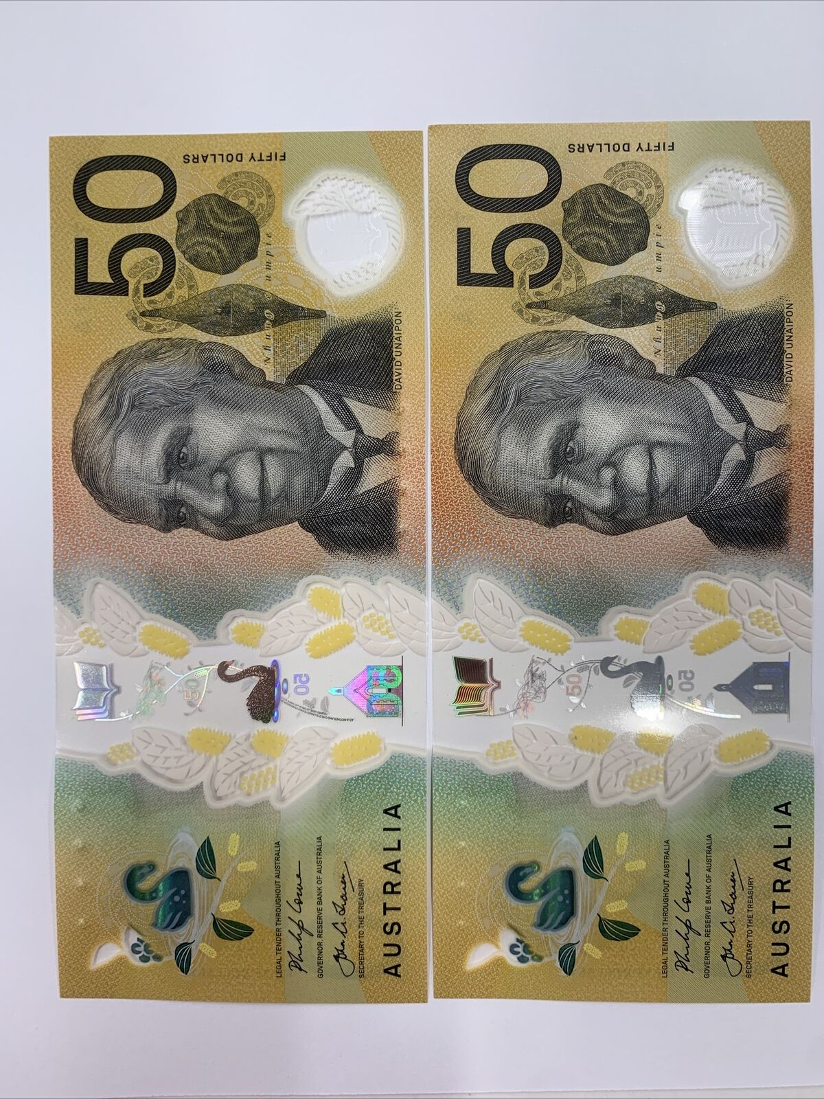 50 dollar note australia 2018 RADAR “8533358” Pair