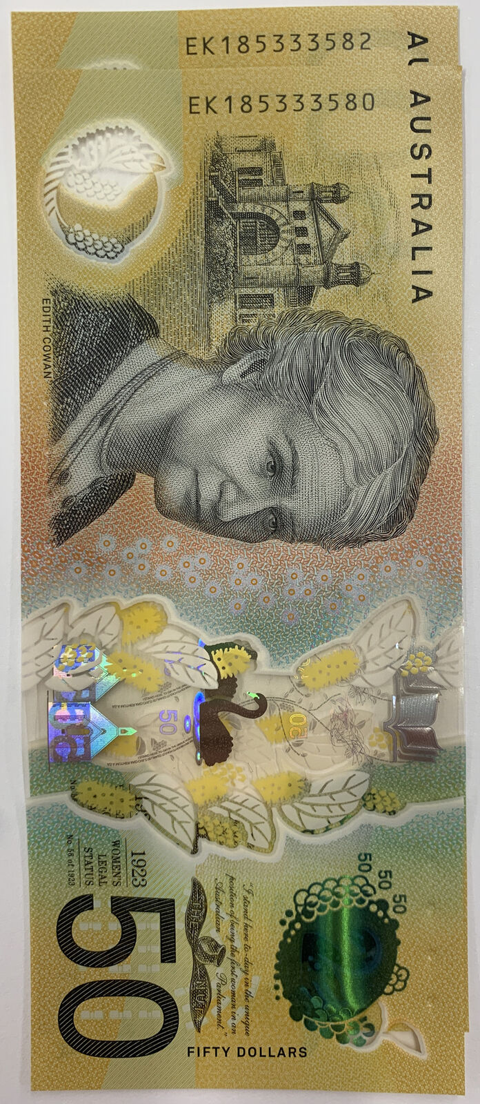 50 dollar note australia 2018 RADAR “8533358” Pair.