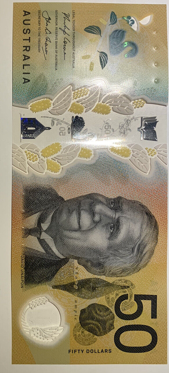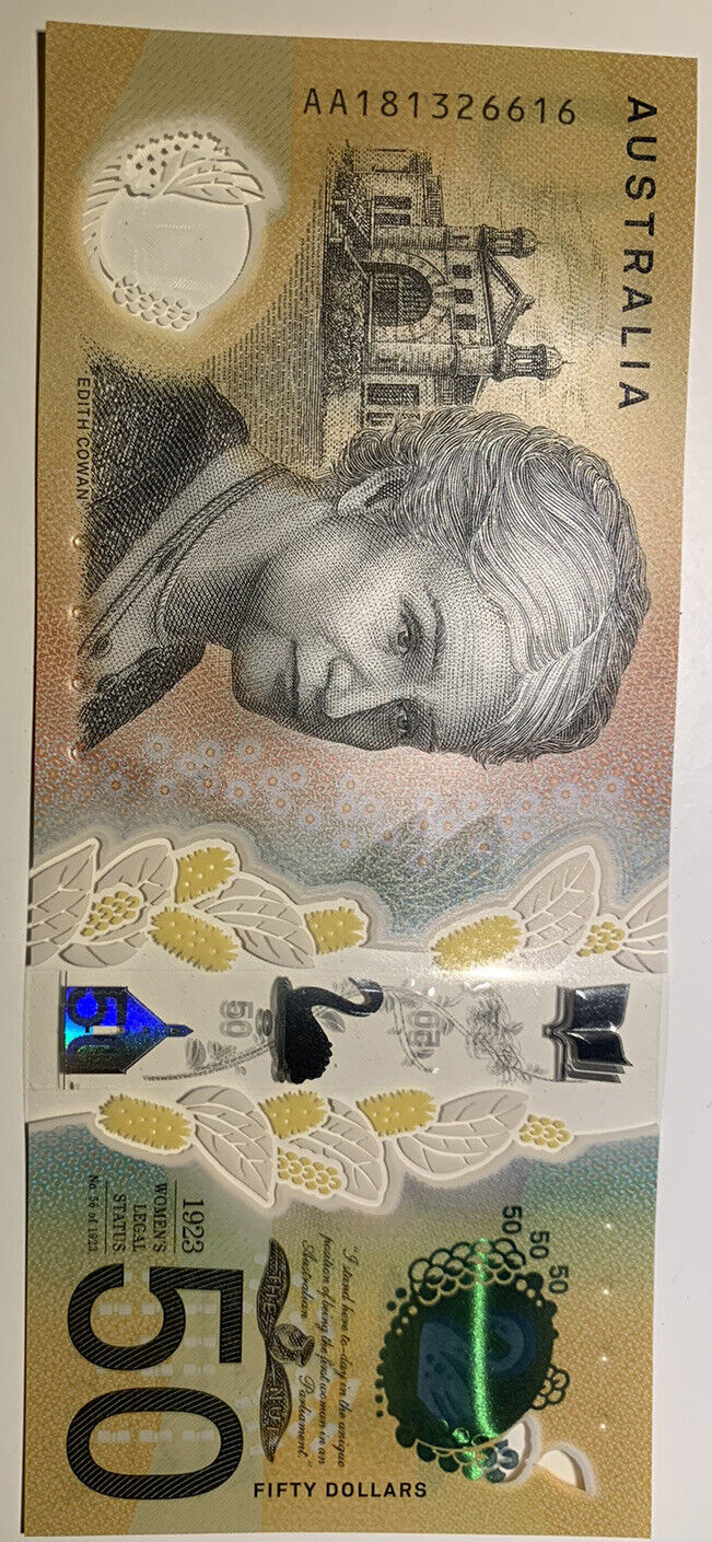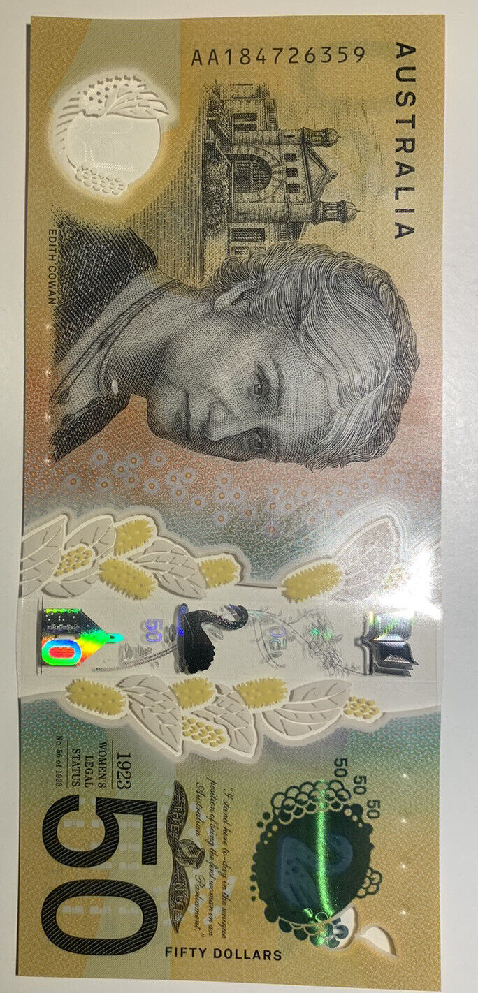 50 dollar note australia LOWE/FRASER FIRST PREFIX AA 2018