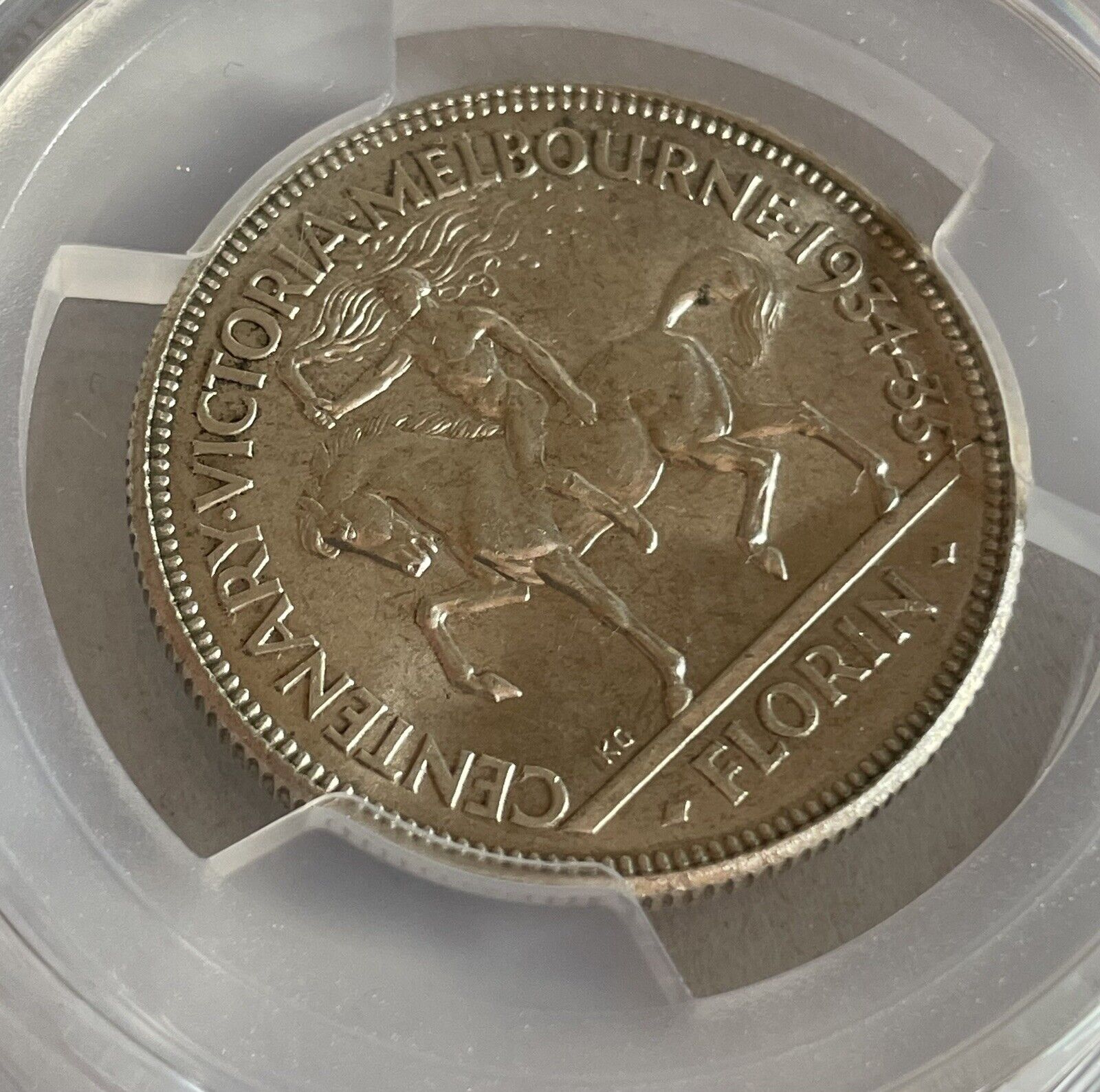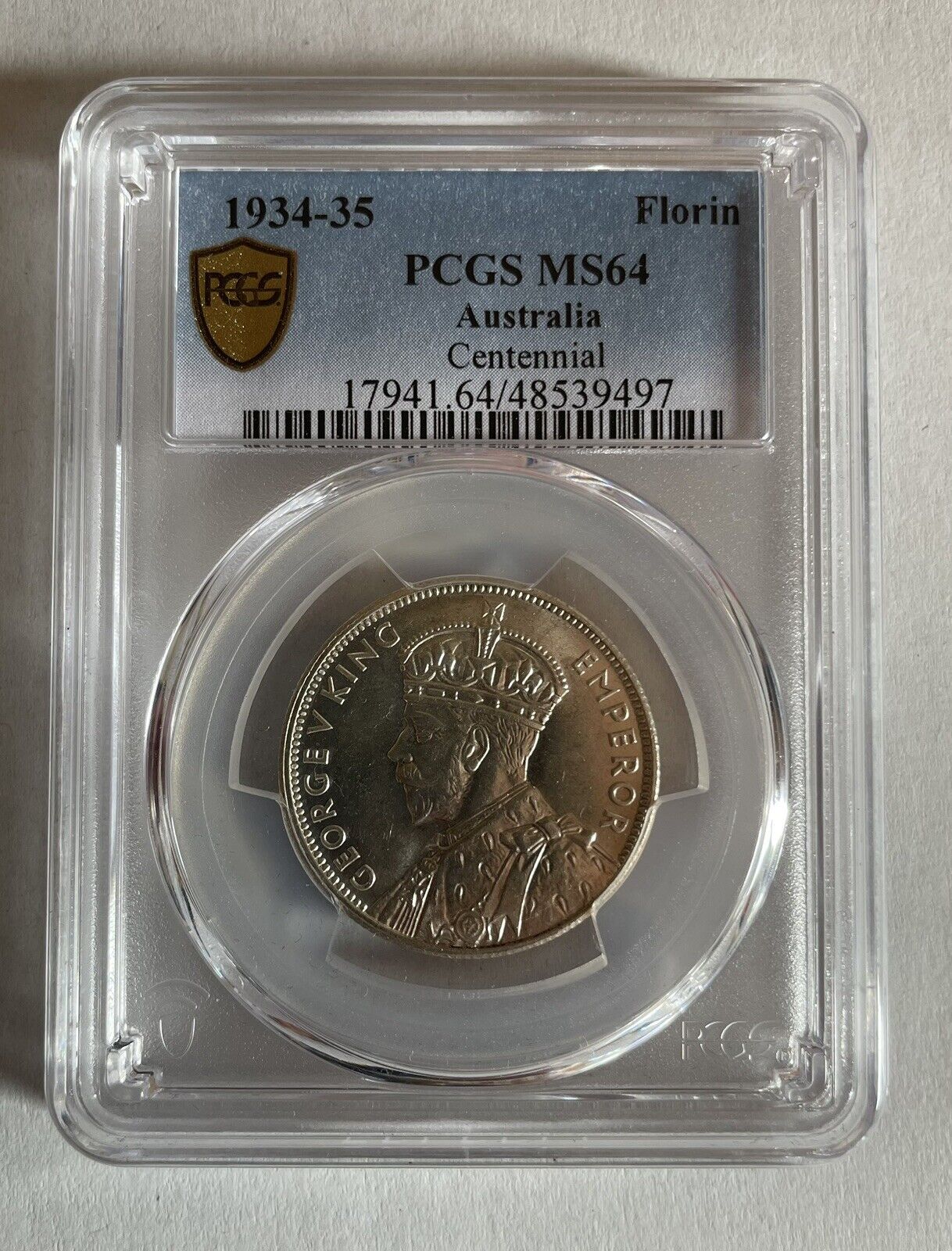 Australia 1934-35 Melbourne Centennial Florin PCgS Graded MS64 2/- Silver CHU