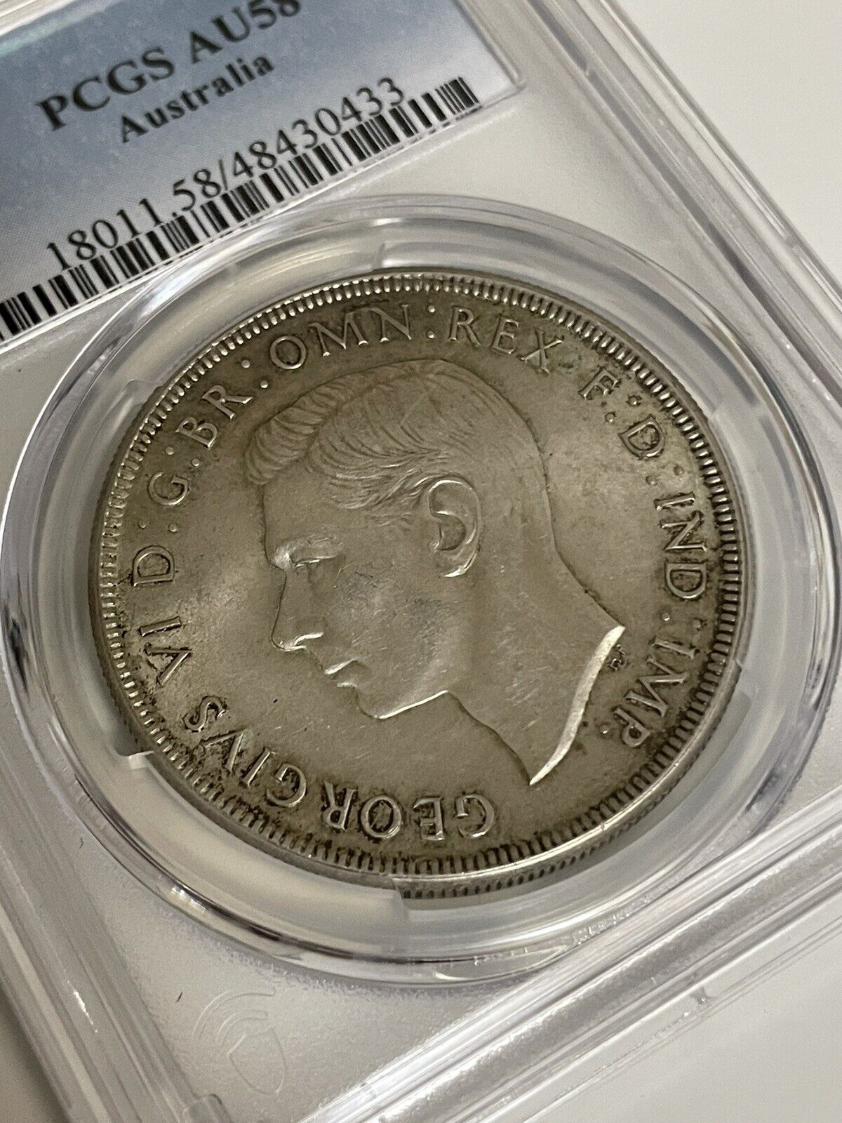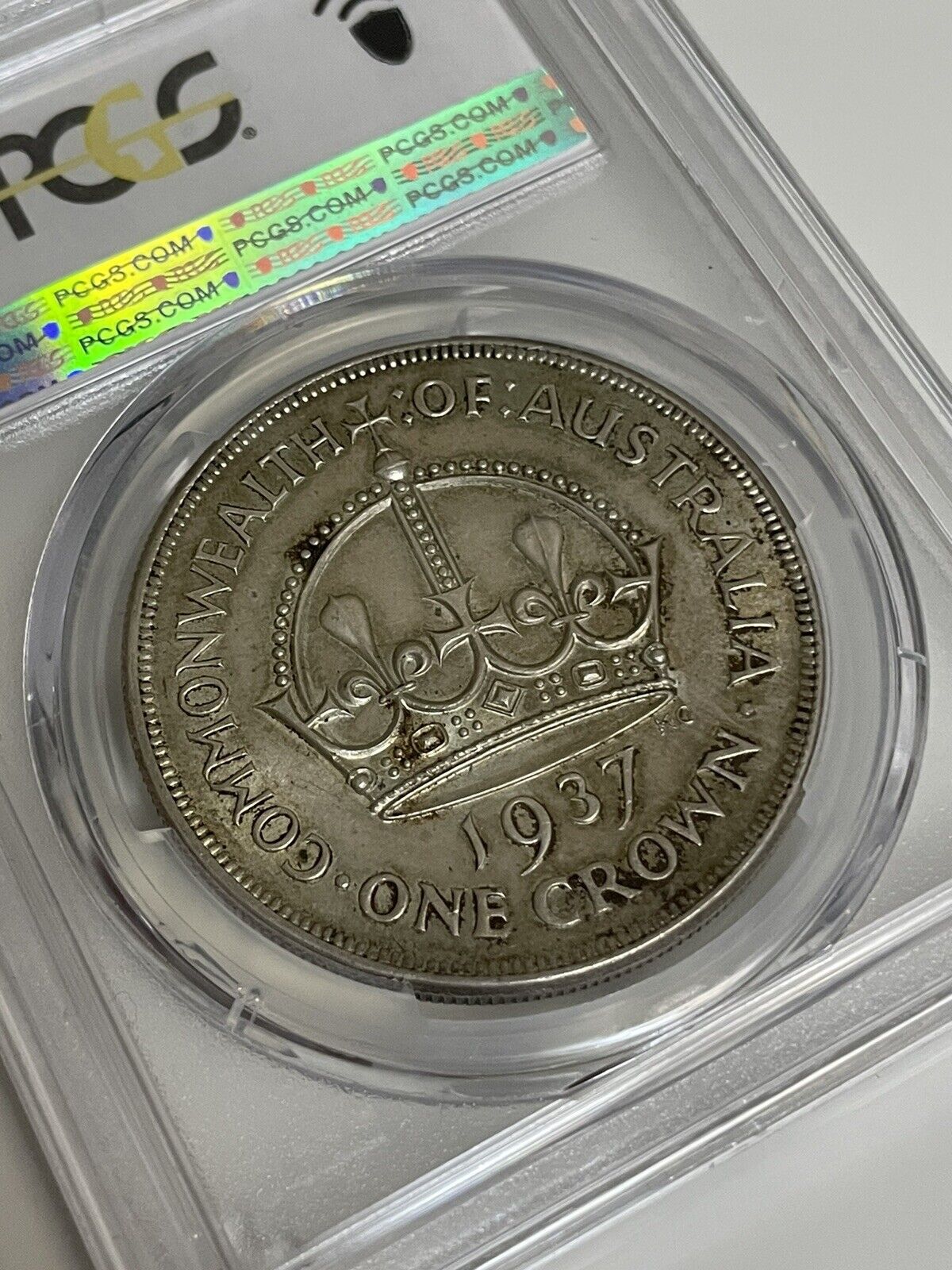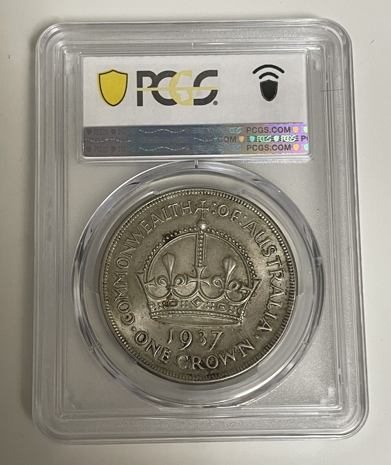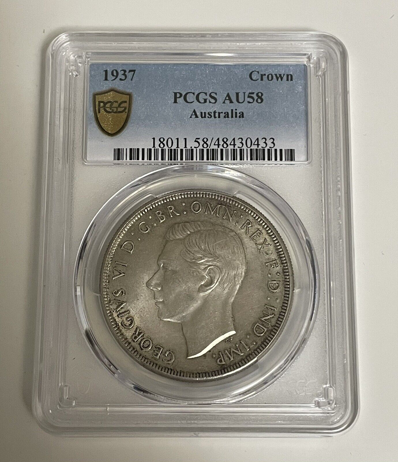 Australia 1937 Crown Five Shillings 5/- Large Silver Coin PCGS Graded au58