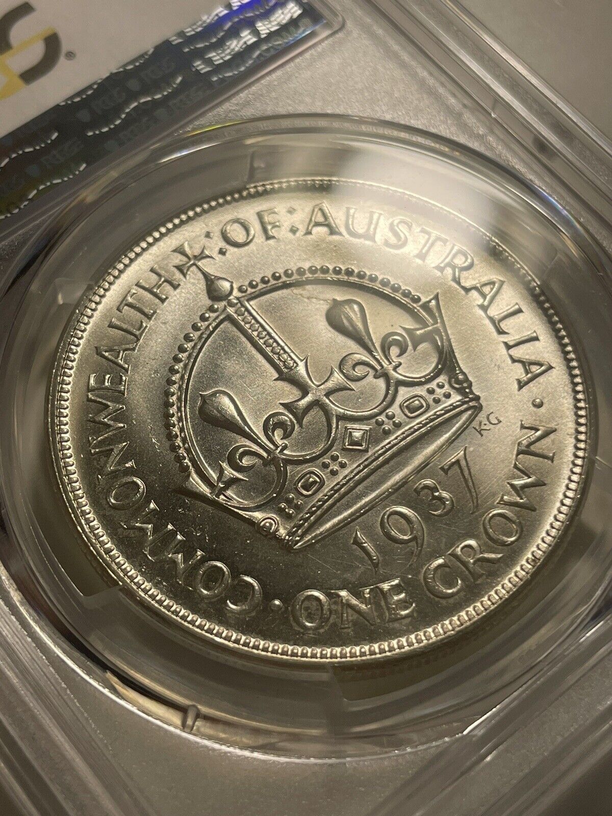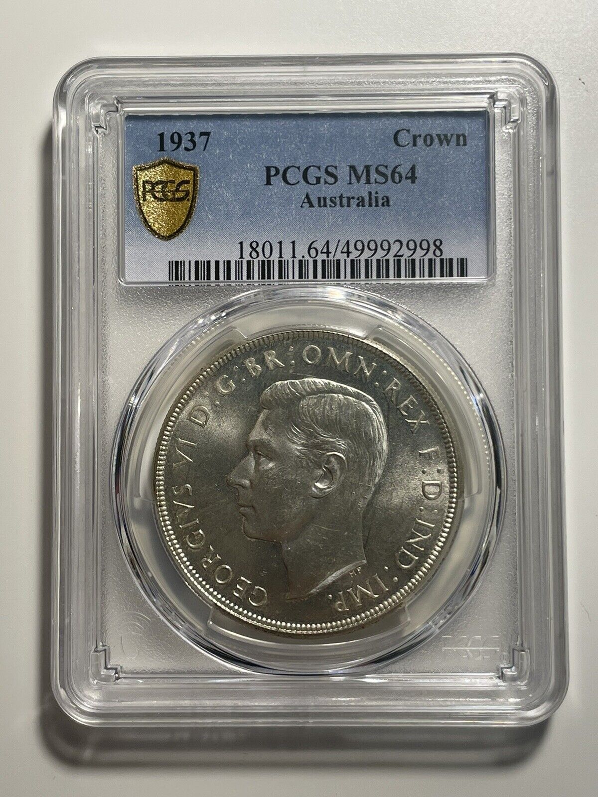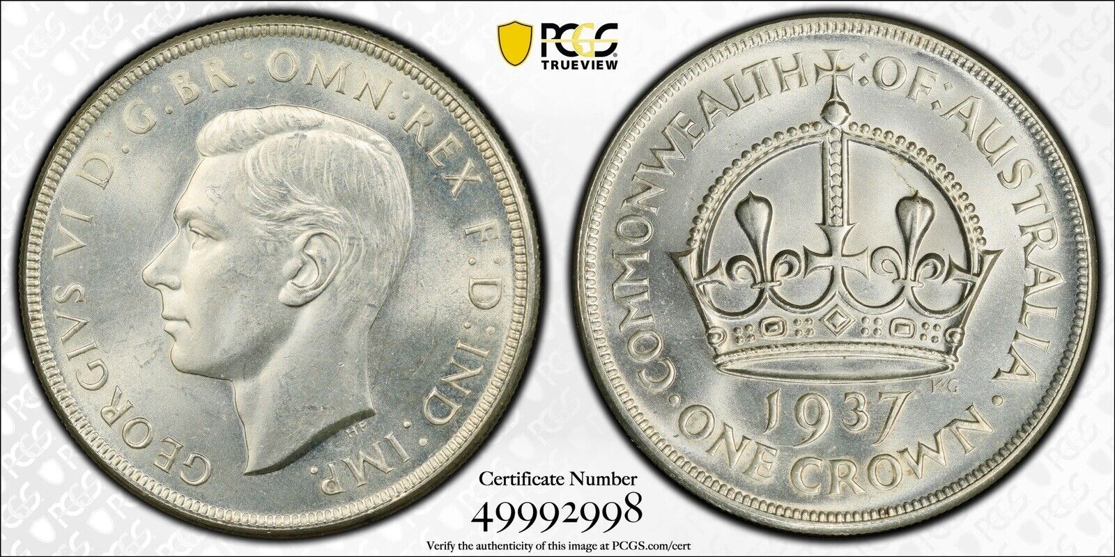 Australia 1937 Crown Five Shillings 5/- Large Silver Coin PCGS Graded MS64