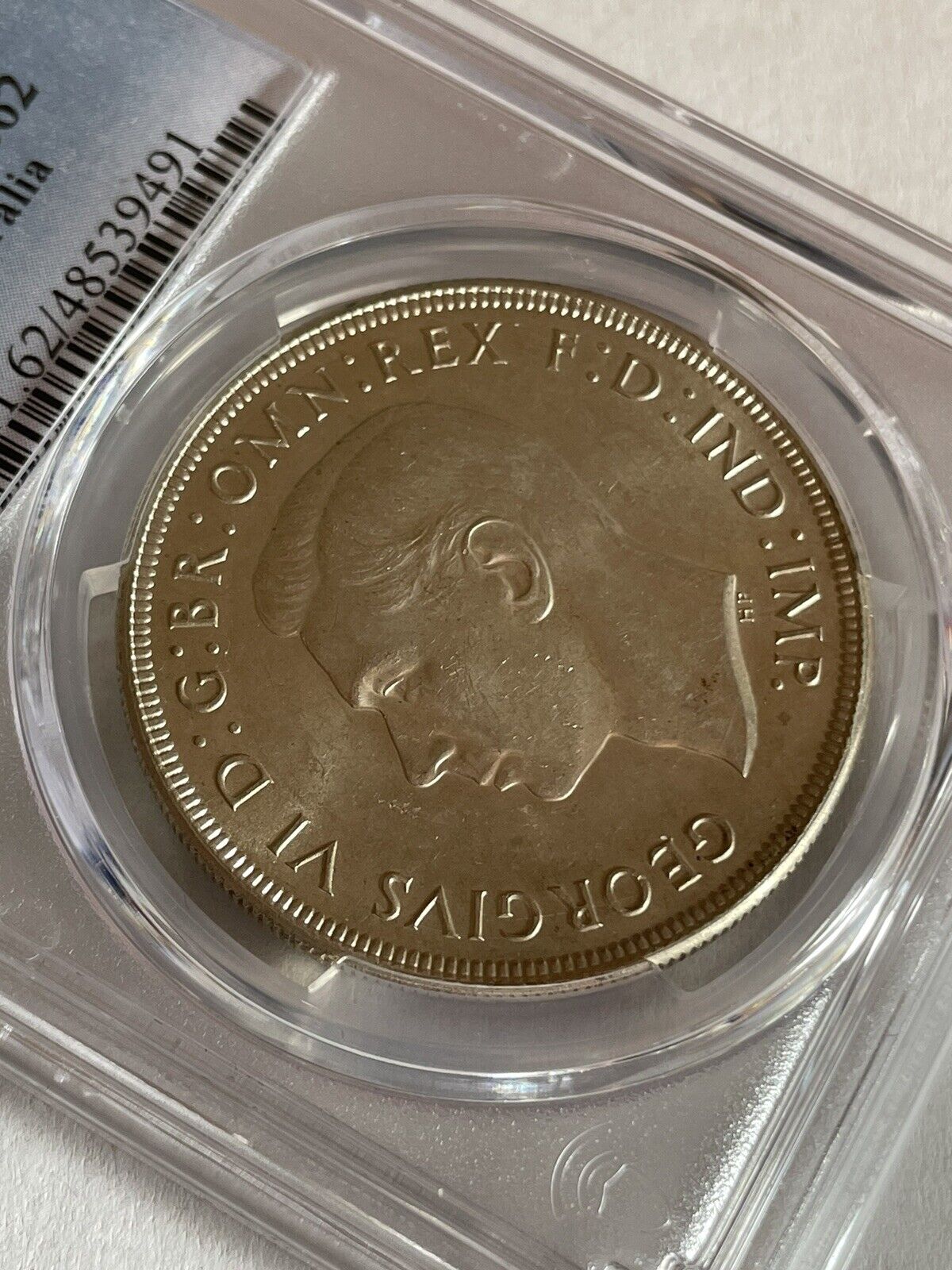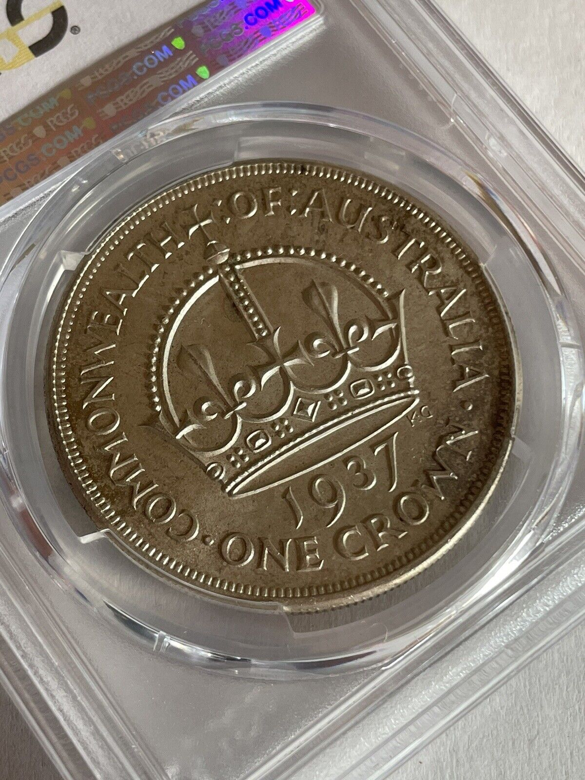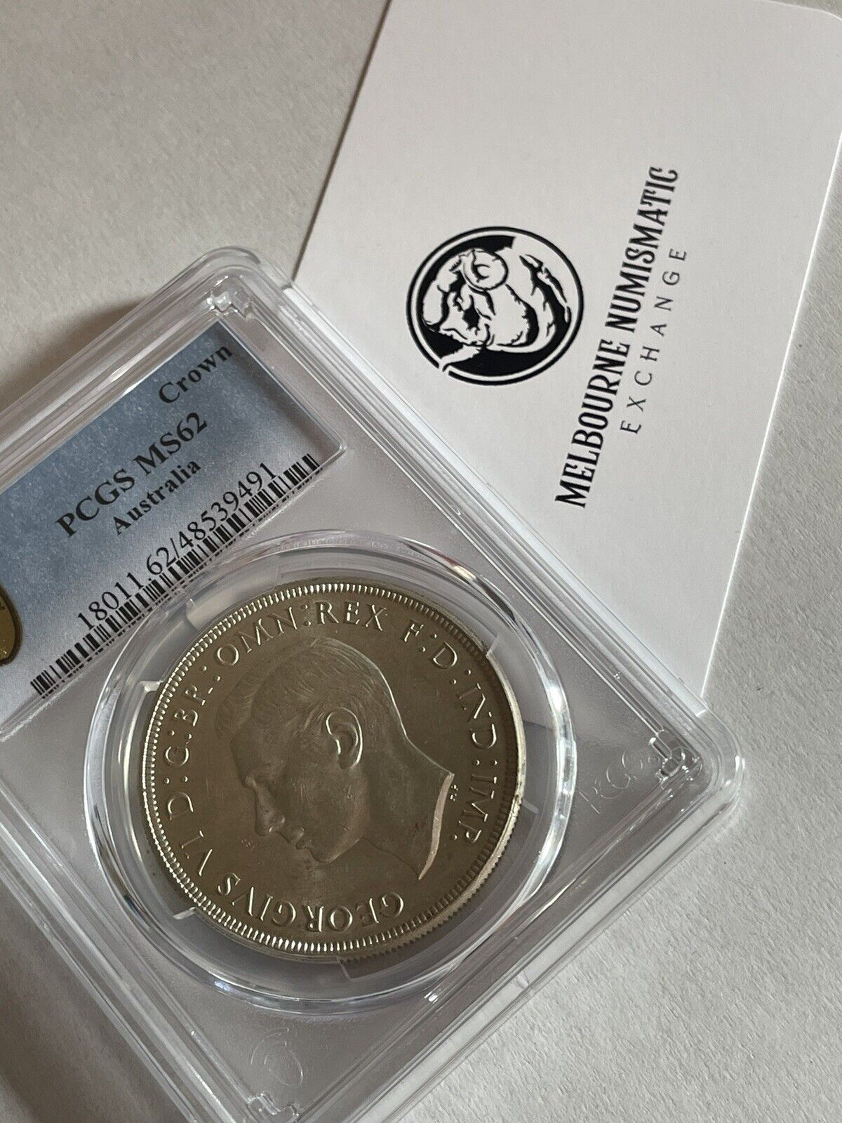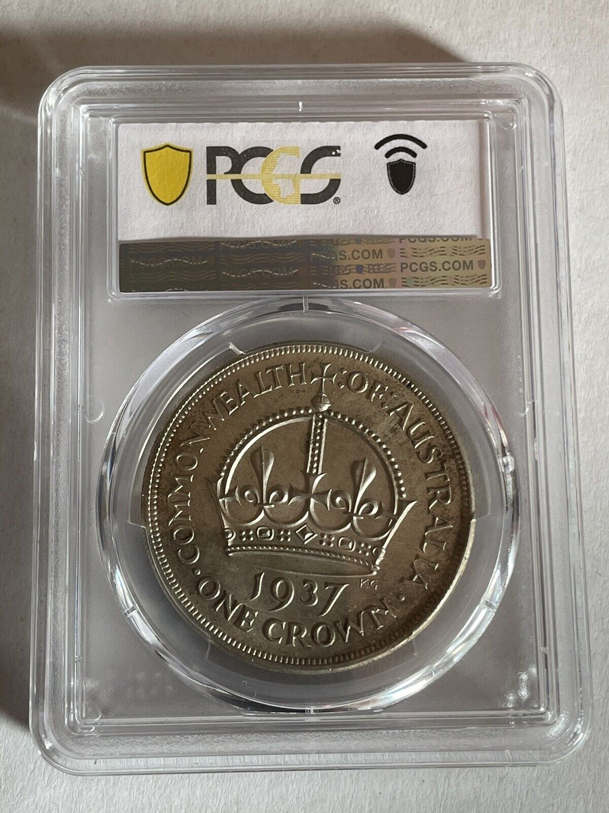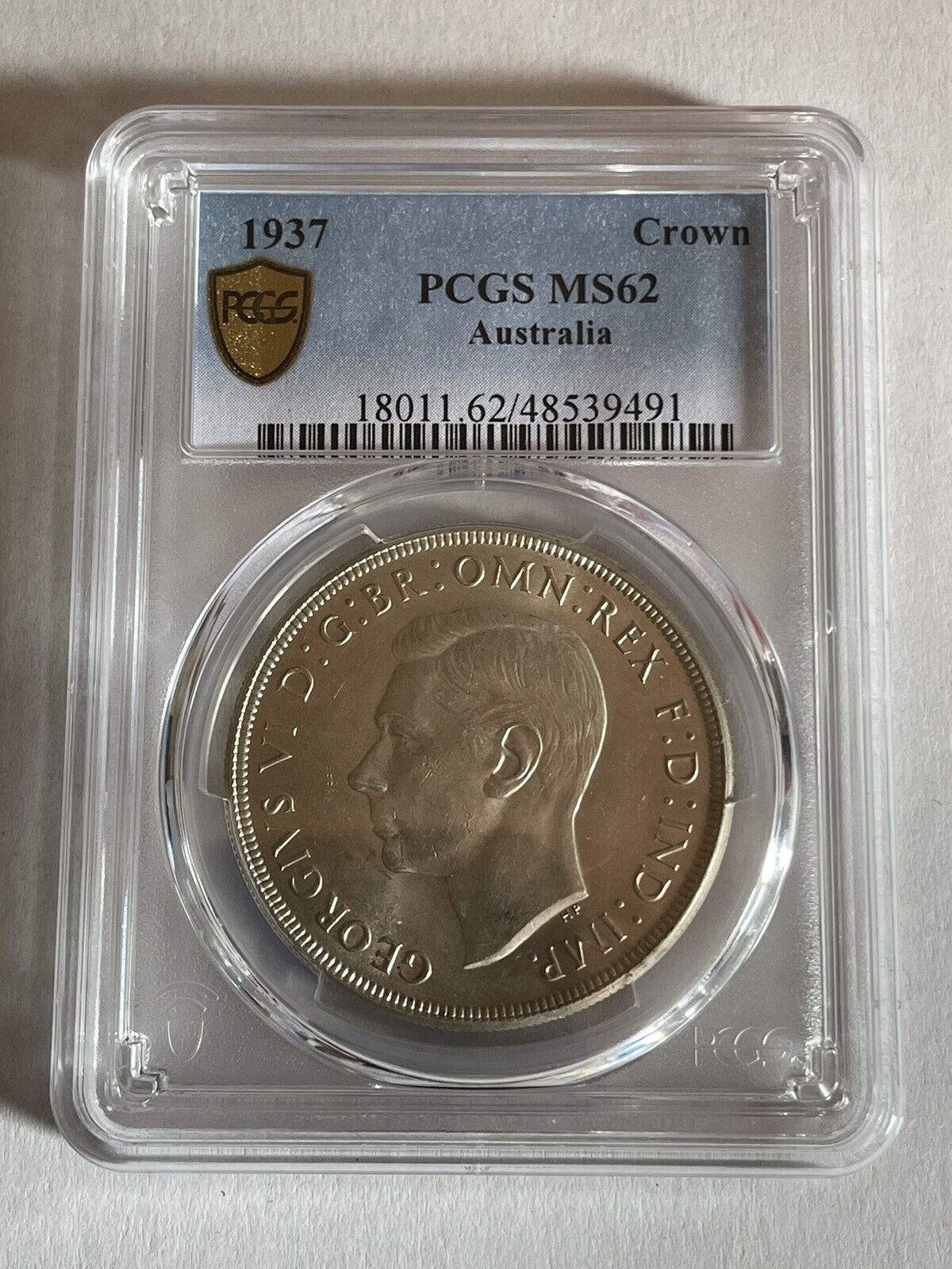 Australia 1937 Crown PCGS Graded MS62 UNC Five Shillings 5/- Large Coin KgVI
