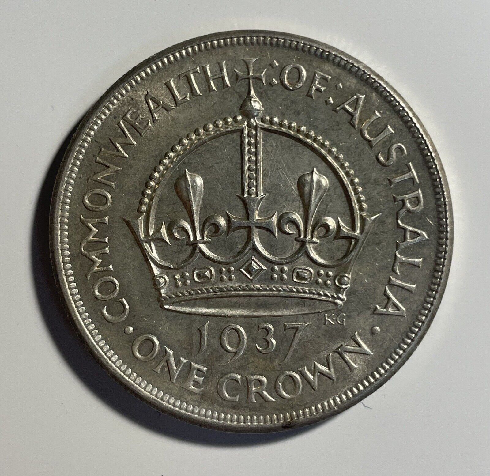 Australia 1937 Crown Sterling Silver Five Shillings 5/- Large Coin Scarce aUNC