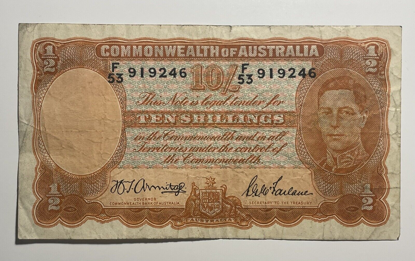 Australia 1949 Armitage Farlane Pre-Decimal Ten Shilling Paper Banknote Fine