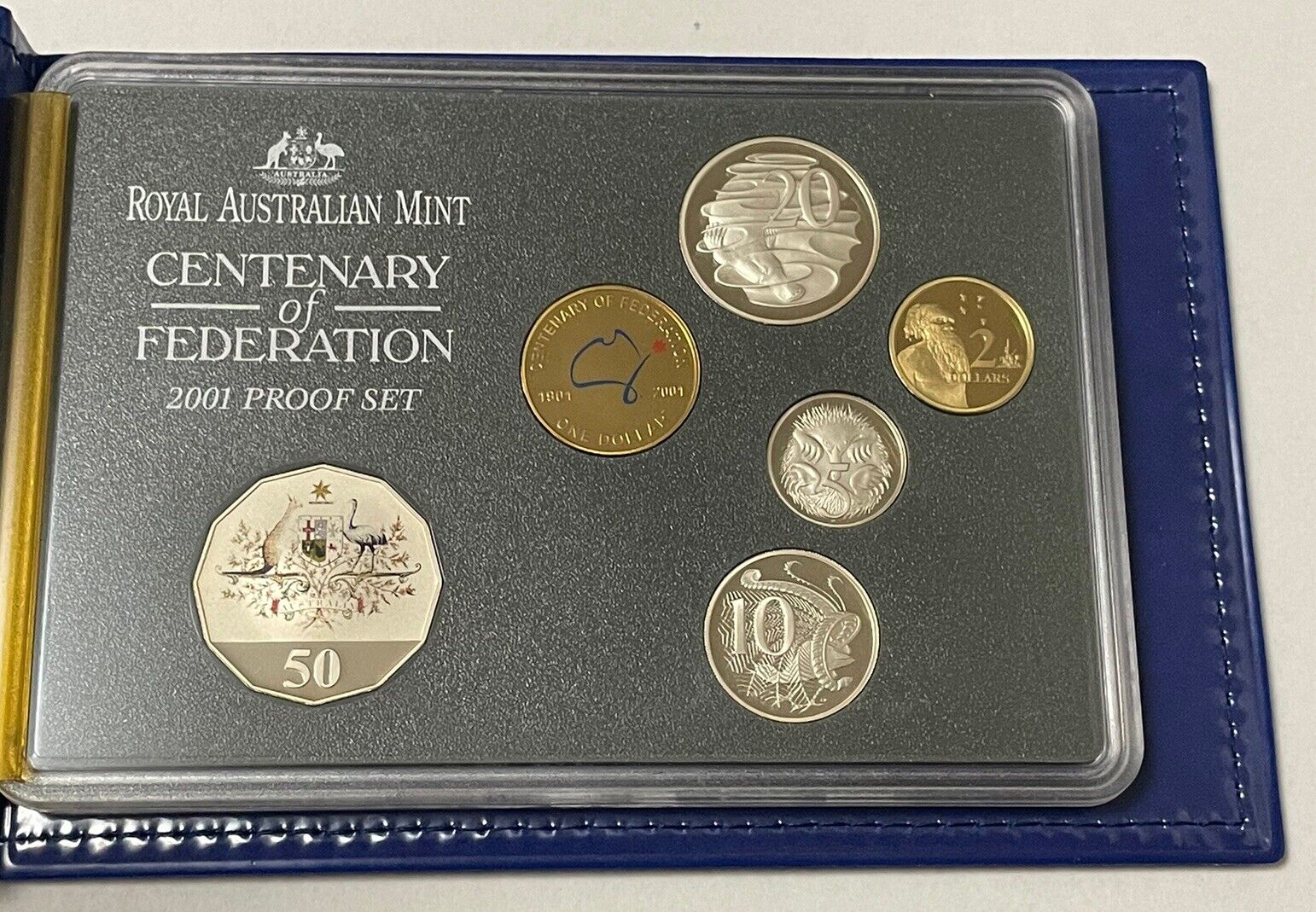 Australia 2001 Six Coin Proof Set Centenary of Federation UNC Coloured $1 & 50c