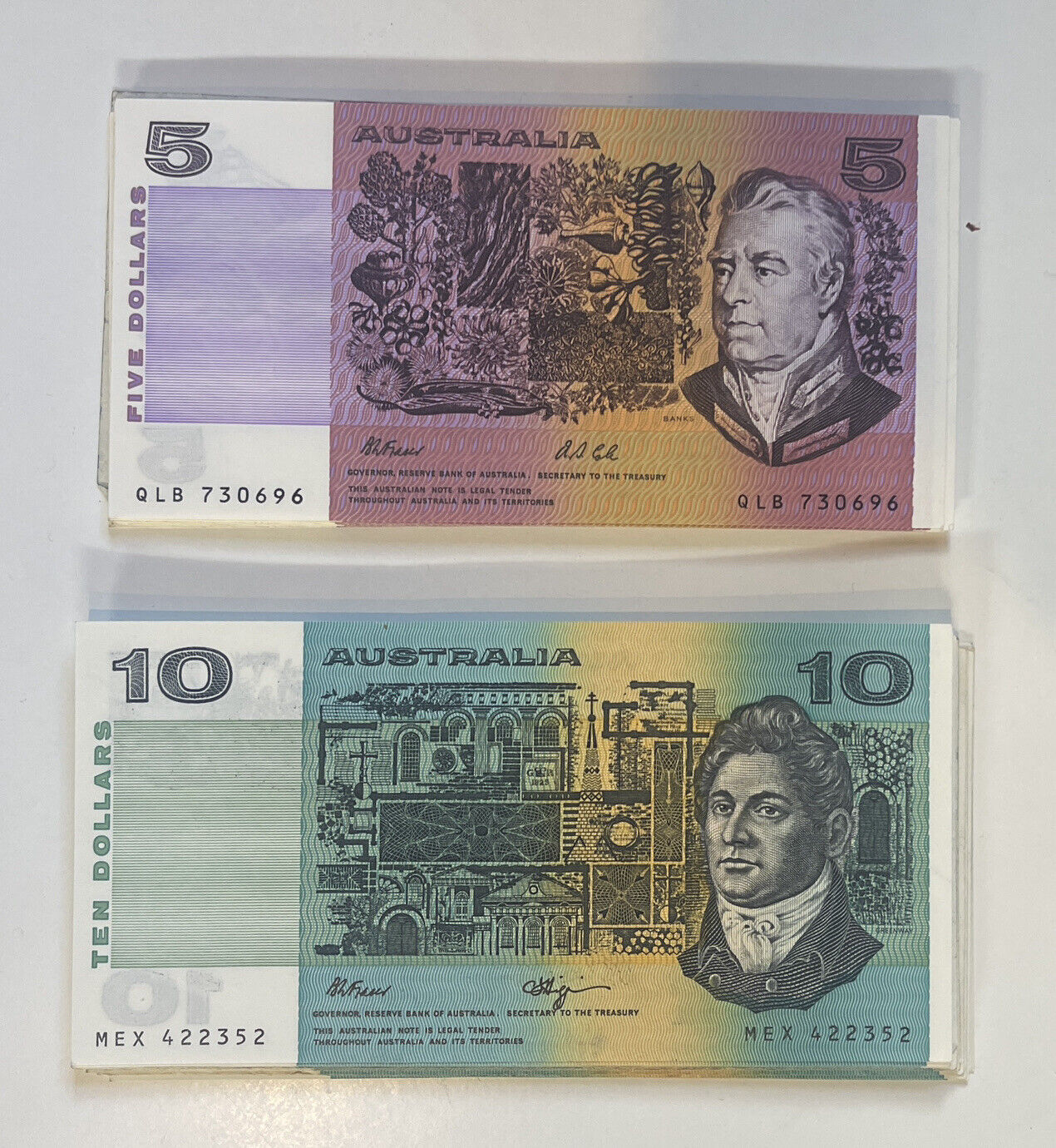 Australian Paper Notes-5 Dollar , 10 Dollar PAIR.