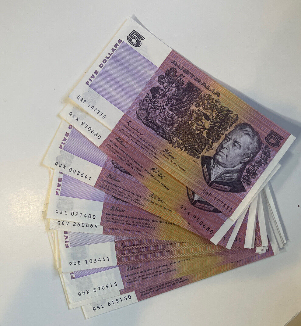 Australia $5 Five & $10 Ten Dollar NOTES - - ONE OF EACH NOTE Circulated